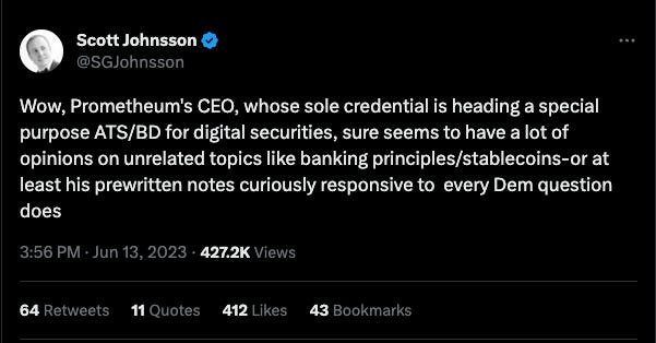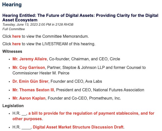 On this episode, we're diving into this weeks U.S. Hearing Entitled: "The Future of Digital Assets: Providing Clarity for the Digital Asset Ecosystem" where $USDC issuer Circle and Layer-1 Blockchain Avalanche ($AVAX) joined together to discuss crypto regulation and two digital asset legislation draft bills. Meanwhile, an SEC shill was brought on to defend the SEC's recent actions against the entire market.